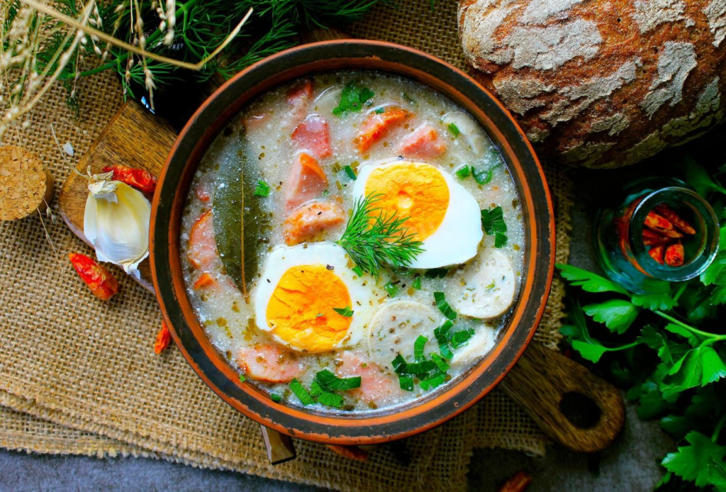 Innym daniem głównym, którego nie może zabraknąć na obiedzie wielkanocnym jest żurek – specjalna kwaśna zupa.