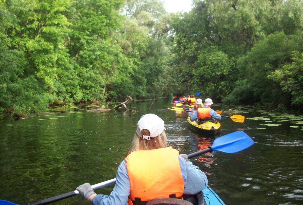 Запускають байдарки на пристані у Врублево. Поруч з нею стоїть цікава церква з спорудою св. Успіння Пресвятої Богородиці з другої половини XVI ст. Пливемо далі на північ серед водної рослинності. Річка захищена валами. З одного боку, це захищає нас від вітру, а з іншого – обмежує огляд.